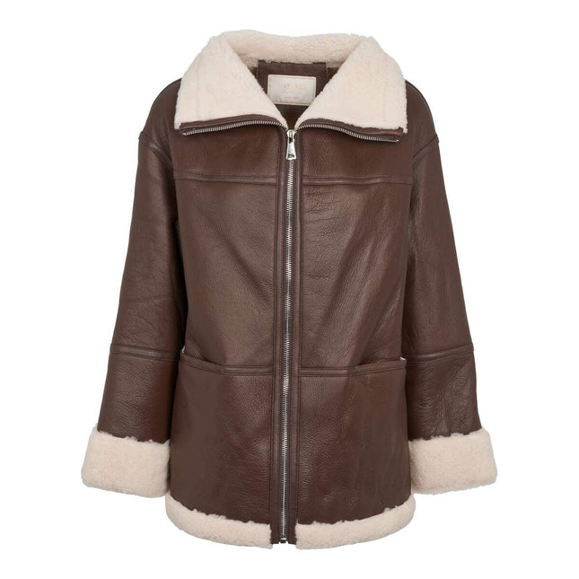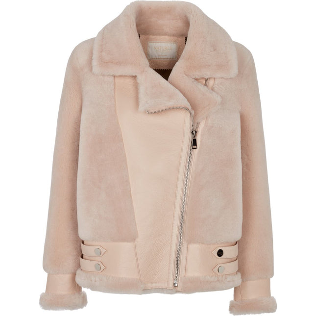 Overfladen på jakken er lammeskind af høj kvalitet og bare smuk. Med lynlåslukning er den både praktisk og moderne.