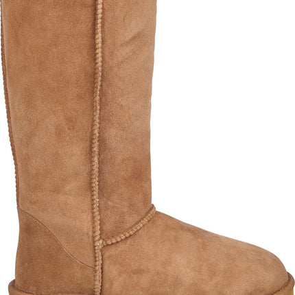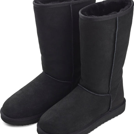 Disse støvler er lavet af New zealandsk lammeskindspels. De er bygget op omkring en solid gummisål, som er rilletpå undersiden, der gør skoen slidstærk og komfortabel at have på.