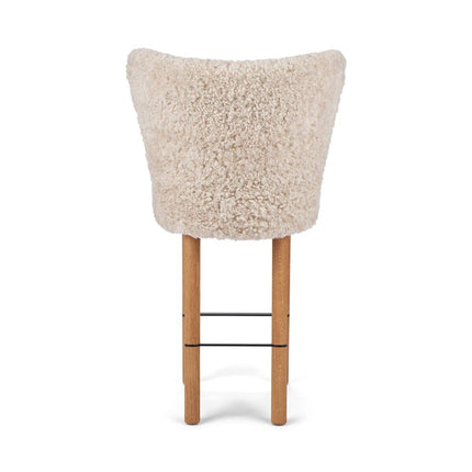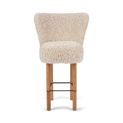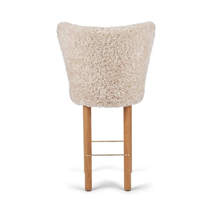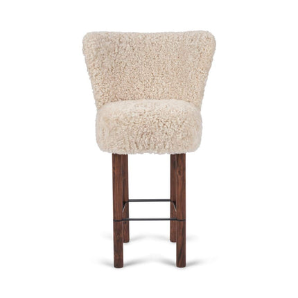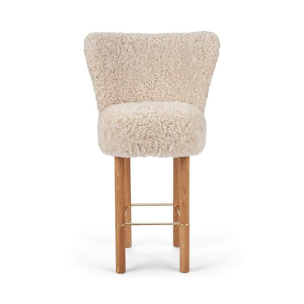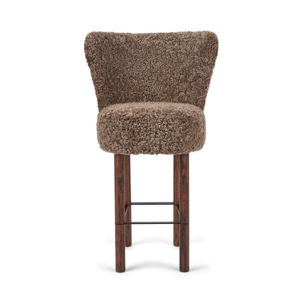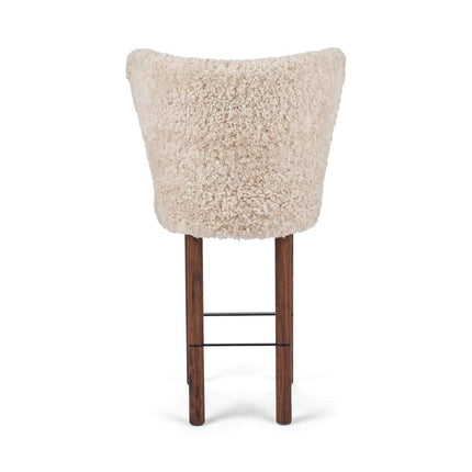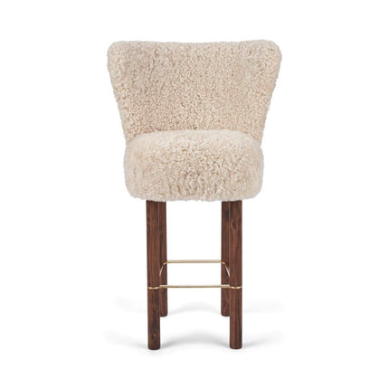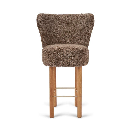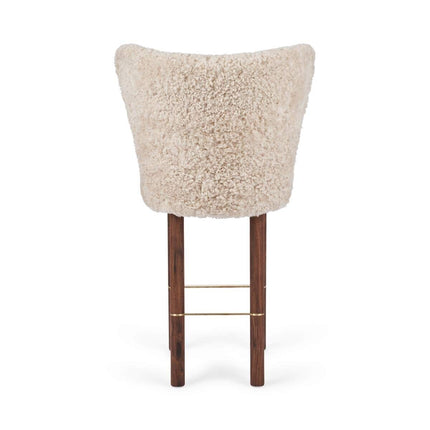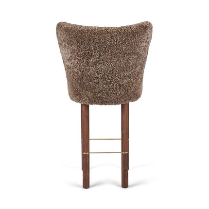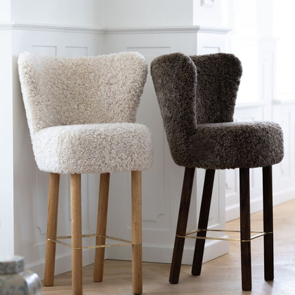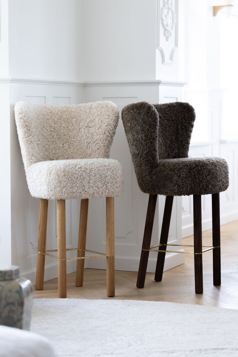 100 % lammeskind, Ben af massivt egetræ, Skum, Sort stålramme, Stel af birkekrydsfiner, Ben af massivt valnøddetræ, Ramme af messing