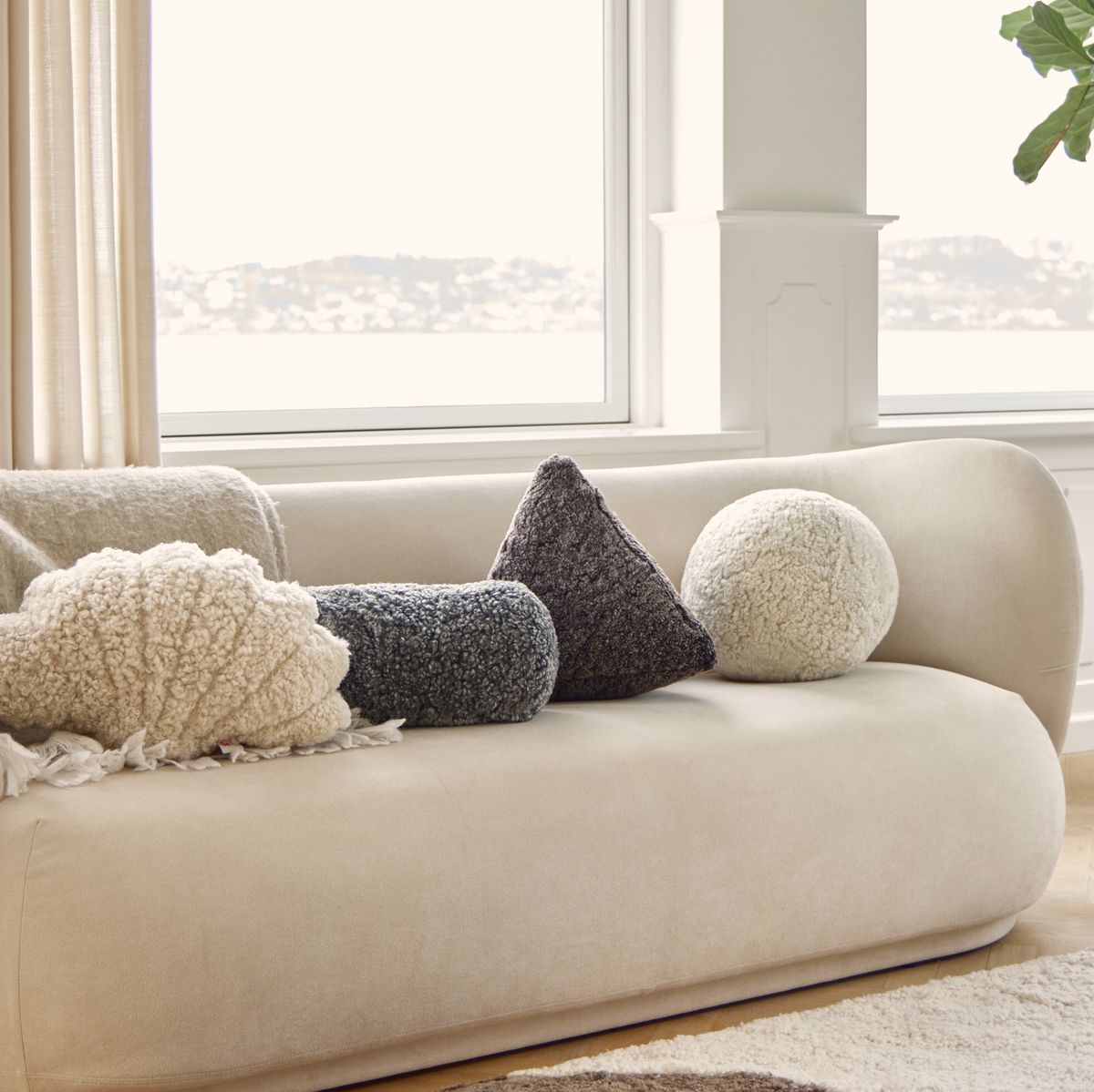 Lammeskindspude | Hematite | Korthåret | 35x35x35 cm
